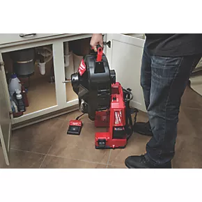 M18 FUEL freestanding drain cleaner with Powerstate brushless motor delivering maximum power 30m down the line. RedLink Plus intelligence system delivers advanced digital overload protection and enhances performance under load. Features Switchpack tool-free drum connection for quick interchange between cable sizes. Electronic foot pedal with non-slip grip ensures maximum durability. Supplied with handy built-in backpack straps.