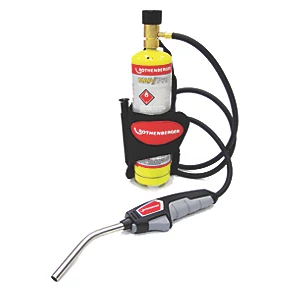 Trigger torch with instant on/off piezo ignition. Durable stainless steel burn tube delivers a swirl flame pattern giving a hot, efficient flame pattern ideal for most soldering operations. Flame lock button keeps the flame lit for finger-free operation. Solid brass regulator with fine adjustment control knob. Suitable for use with propane or MAP/Pro gas cylinders. Supplied with quick-release gas bottle carrying holster and 1.5m flexible burn tube.